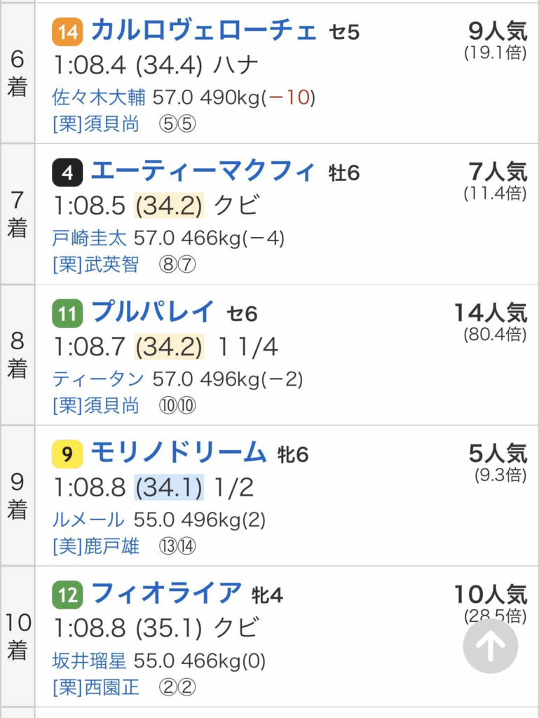 3着馬とはハナ差の6着。